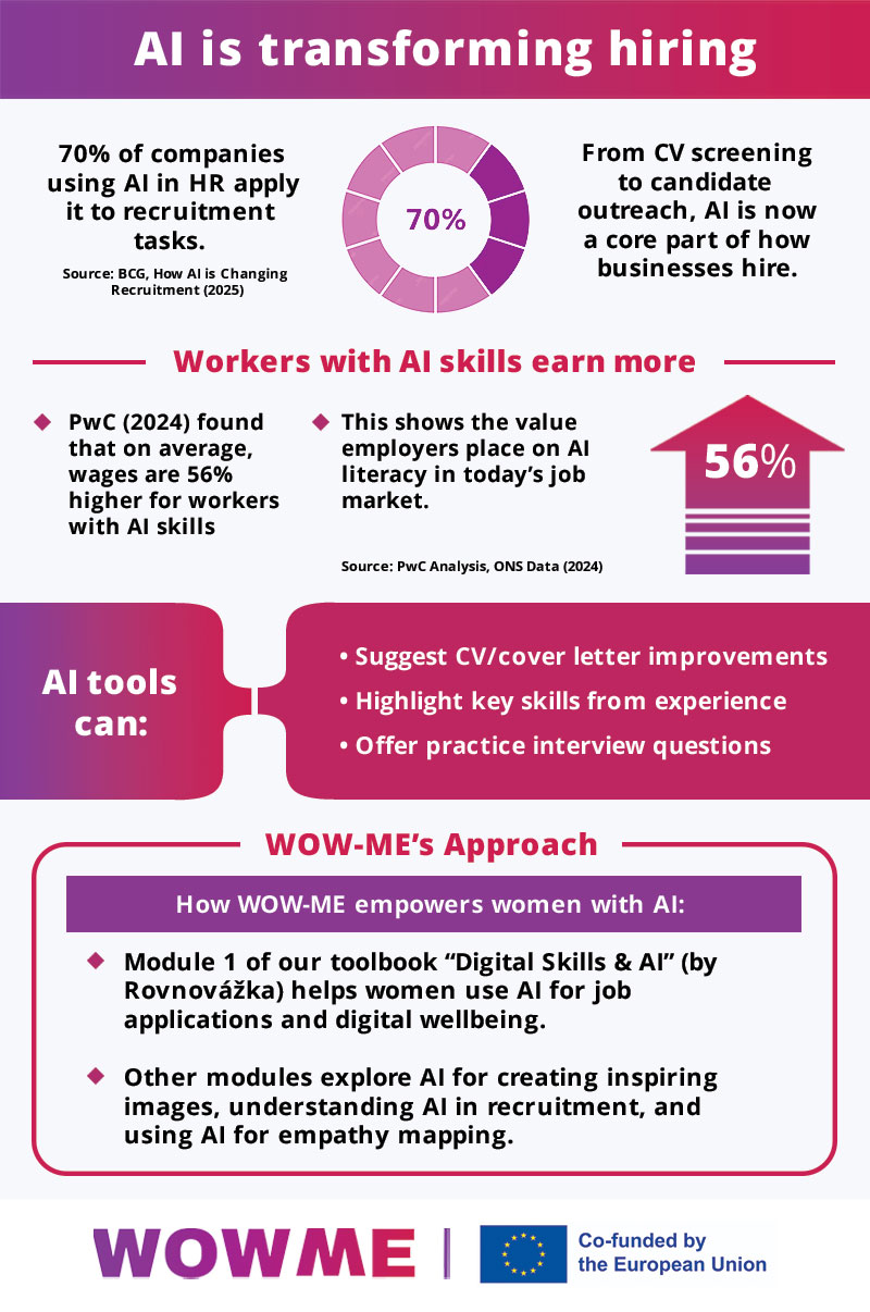 • Module 1 “Digital Skills & AI” (by Rovnovážka) helps women use AI for job applications and digital wellbeing.